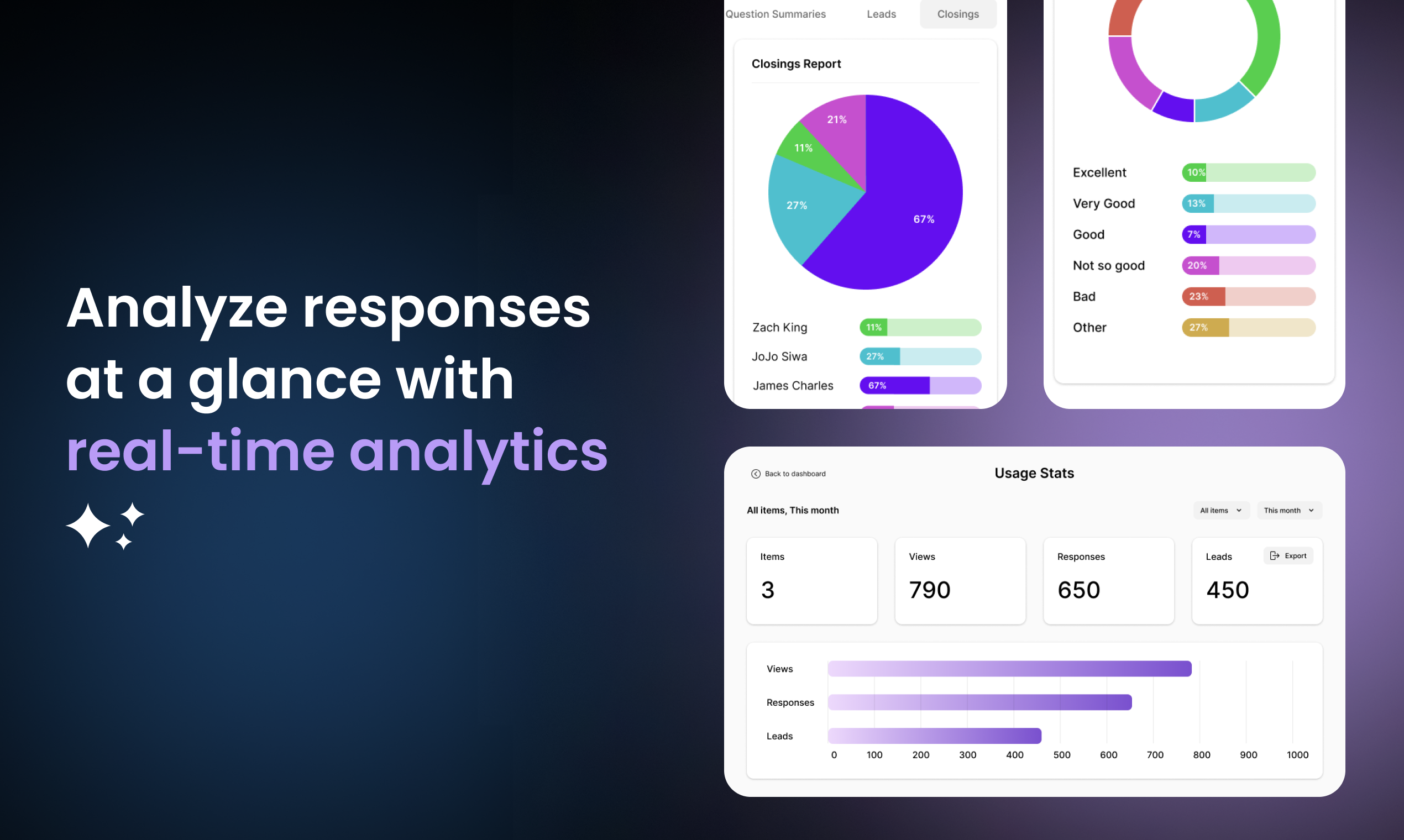 Use conversational quizzes, surveys, and forms to streamline internal communications, improve employee training, or spice up your marketing strategy. We've got a solution for every department. Learn more...