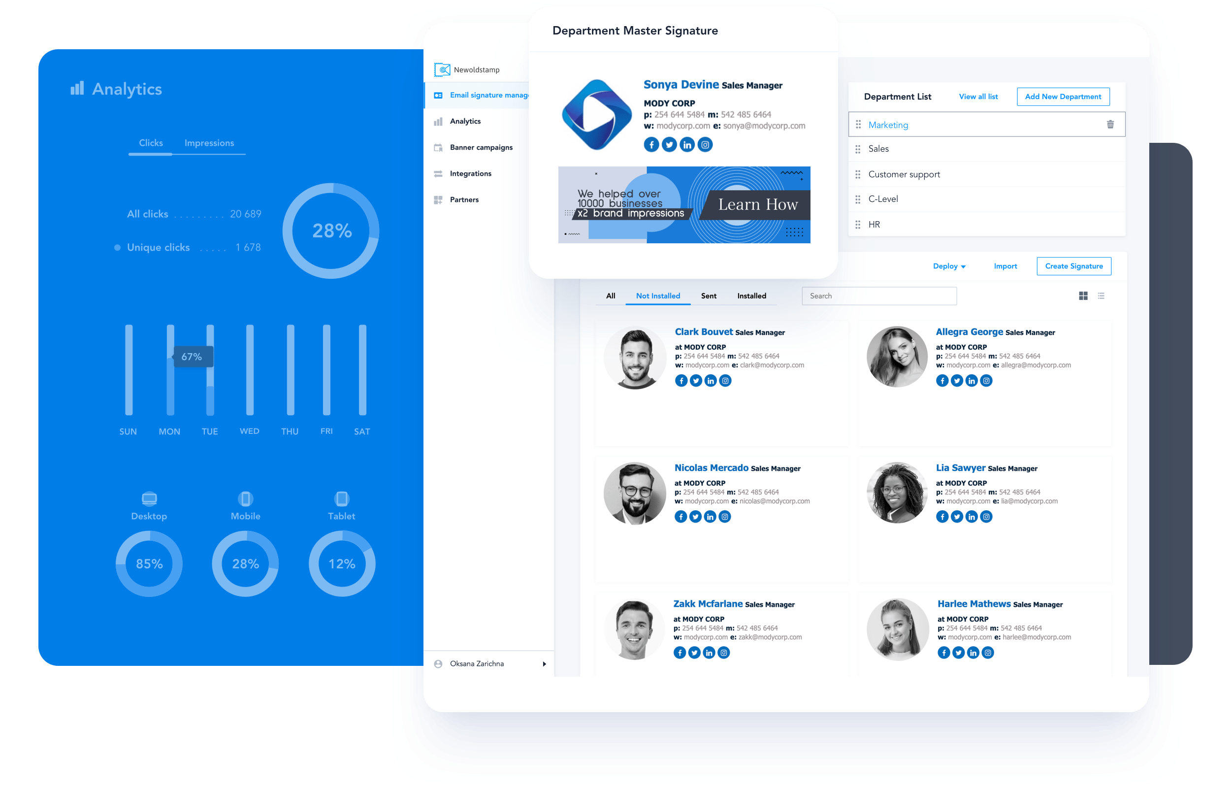 Newoldstamp is an email signature management platform that enables you to easily design and implement brand-consistent signatures across your entire organization. With a single dashboard, you can manage all signatures, streamline updates, and seamlessly integrate with major email clients like Google Workspace, Exchange, and Microsoft 365โhelping boost marketing and sales conversions through branded email communication.
