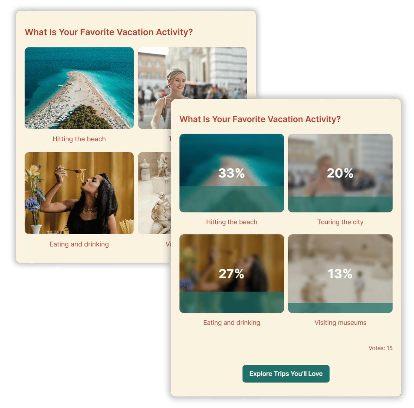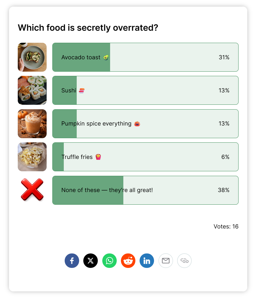 Let users vote with their eyes by using image polls, ideal for choosing between designs, products, or other visual options.