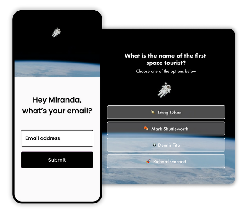 Lead generation quizzes can get 5x more leads than regular lead forms thanks to their interactive nature. People are more likely to give you their details after you’ve given them an entertaining experience, especially when they receive feedback or a score for the quiz they just took in return.