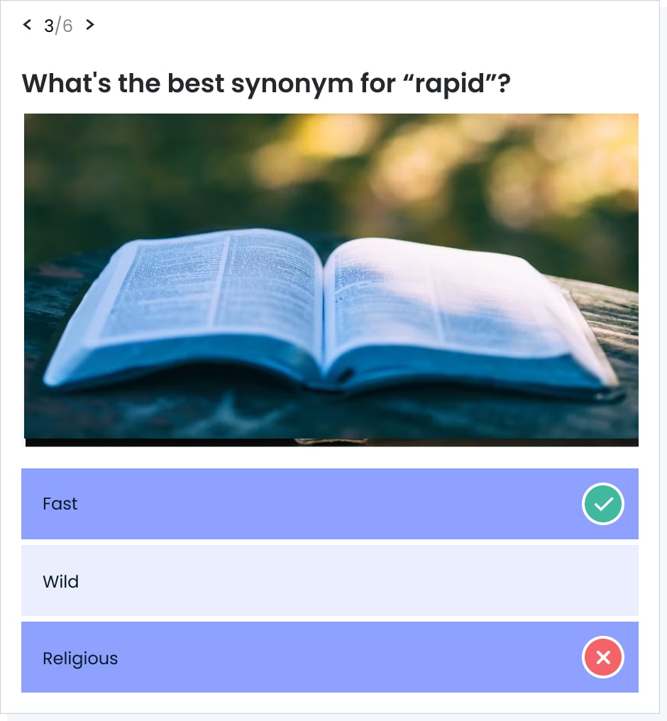 Help your students gain a deeper understanding of the learning material and give them instant feedback by making a vocabulary quiz with answer explanations.