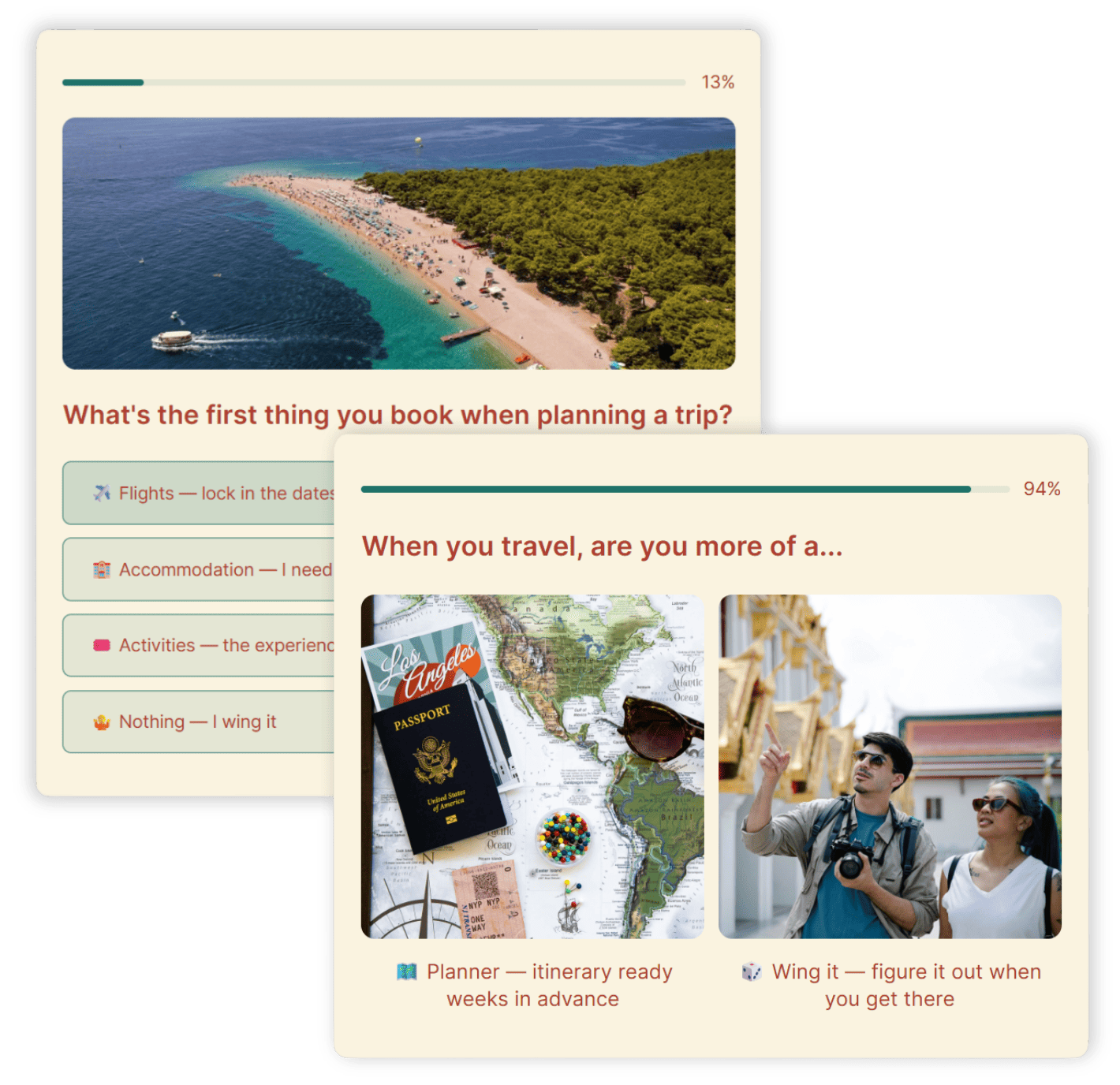Visual surveys keep people engaged and more likely to complete them. Images and videos help explain concepts, make answer options clearer, and turn a plain list of questions into something people want to finish.